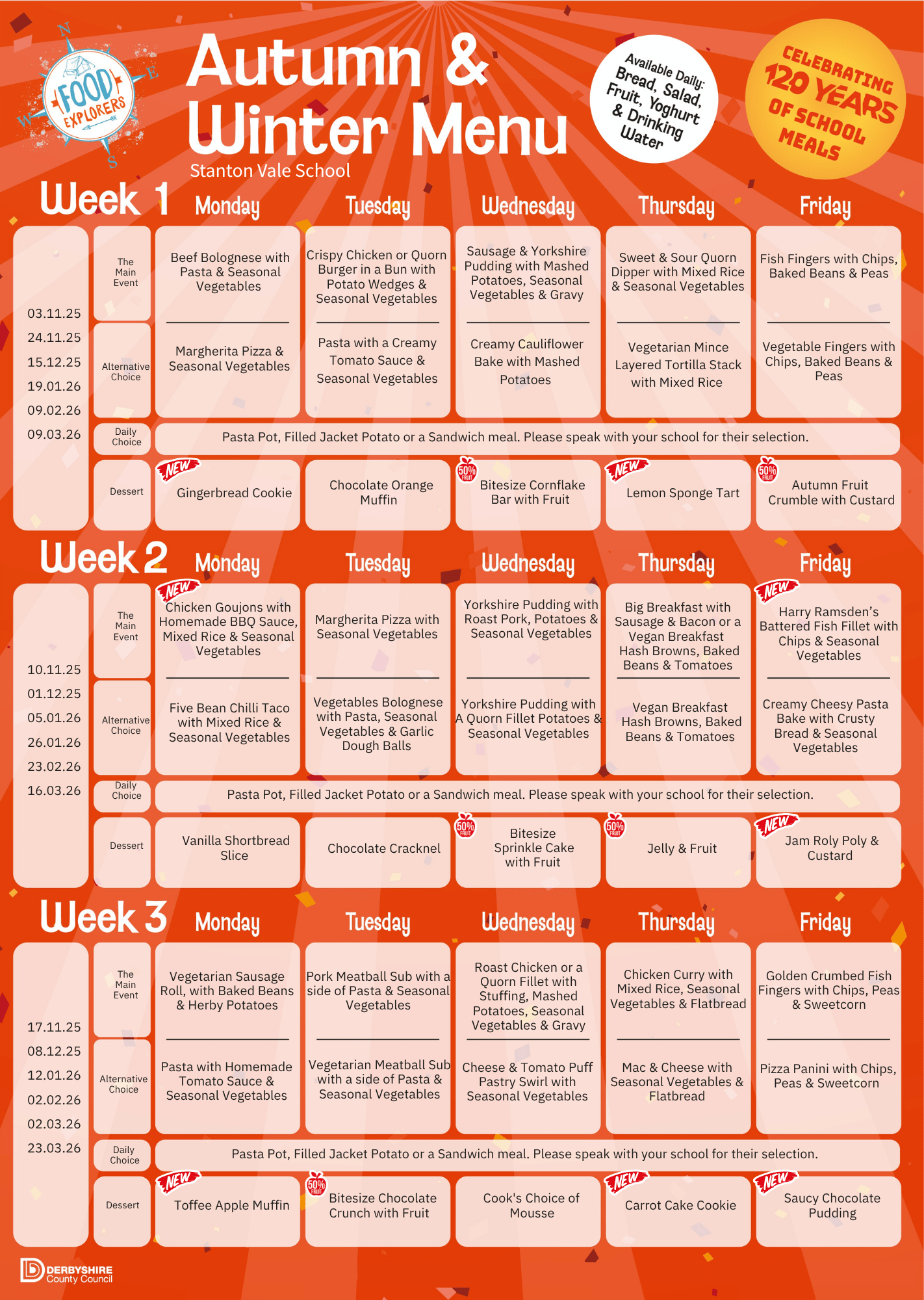 Our catering services are provided by Derbyshire County Council’s catering section and our pricing follows their recommendation. Please see below for the cost of your child’s meal below for 2023/24